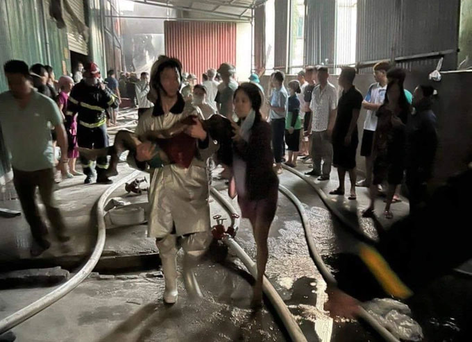 Quá trình dập lửa cứu nạn, lực lượng chức năng đã phát hiện và đưa 3 mẹ con chị V. đi cấp cứu tại Bệnh viện Bỏng quốc gia trong tình trạng bị bỏng nặng. Đến 21h ngày 10/9, cả 3 mẹ con đã không qua khỏi. Danh tính các nạn nhân gồm V.T.V. (29 tuổi), N.T.G.H. (5 tuổi), N.K.A. (4 tuổi), là mẹ con chủ xưởng chăn đệm.