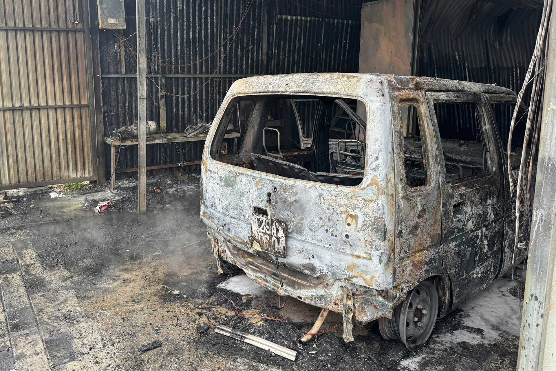 Theo thống kê sơ bộ, xưởng có diện tích khoảng 150m2 gồm 1 tầng, 1 gác lửng. Lửa phát ra từ ô tô nhãn hiệu Suzuki Wagon mang BKS 29A-006.XX, sản xuất năm 2004. Diện tích đám cháy khoảng 20m2 là khu vực sơn, đánh bóng xe.