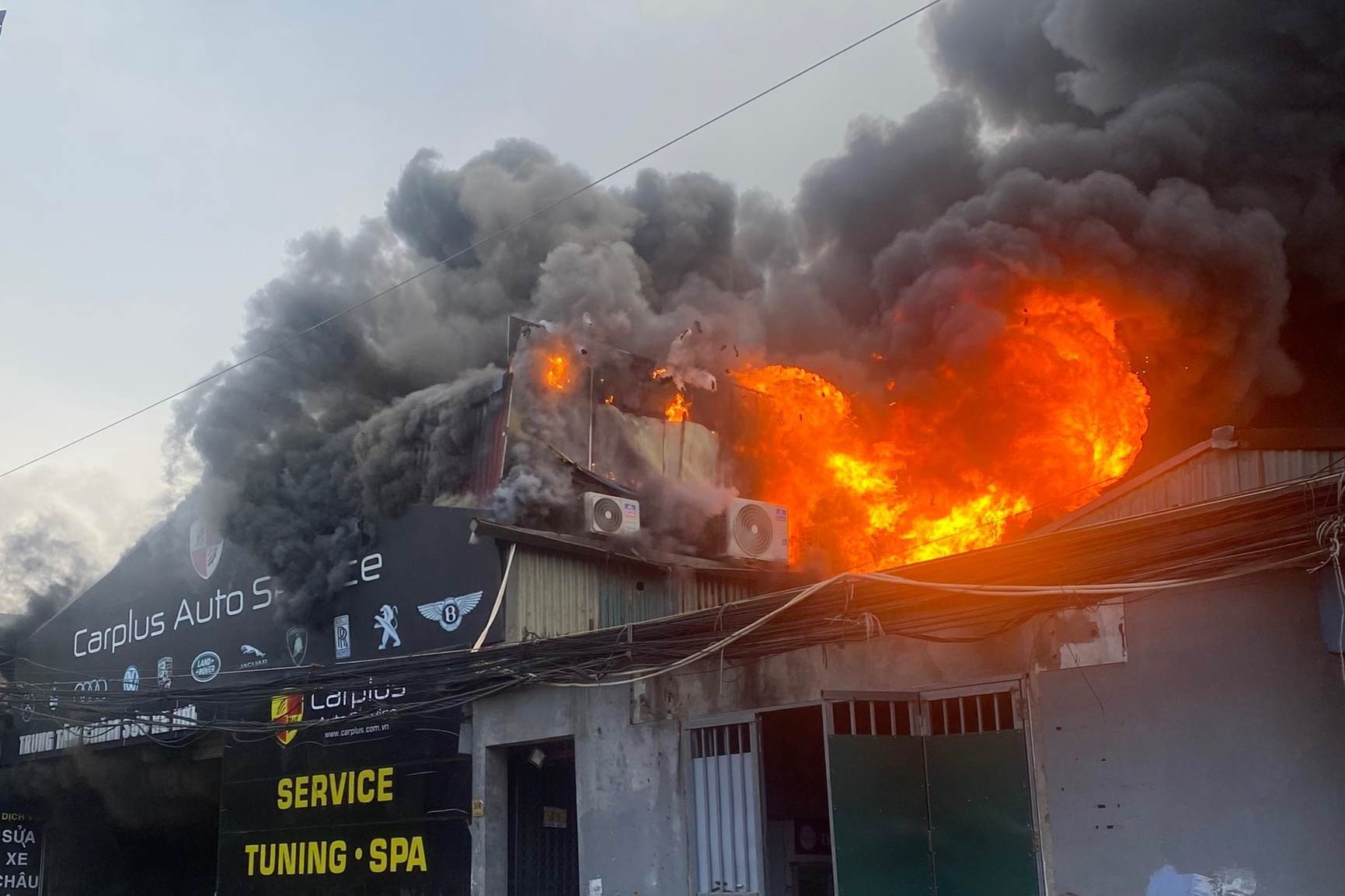 Một xưởng sửa chữa ô tô tại đường Nguyễn Văn Giáp (K2, phường Cầu Diễn, quận Nam Từ Liêm, Hà Nội) bất ngờ bốc cháy dữ dội.