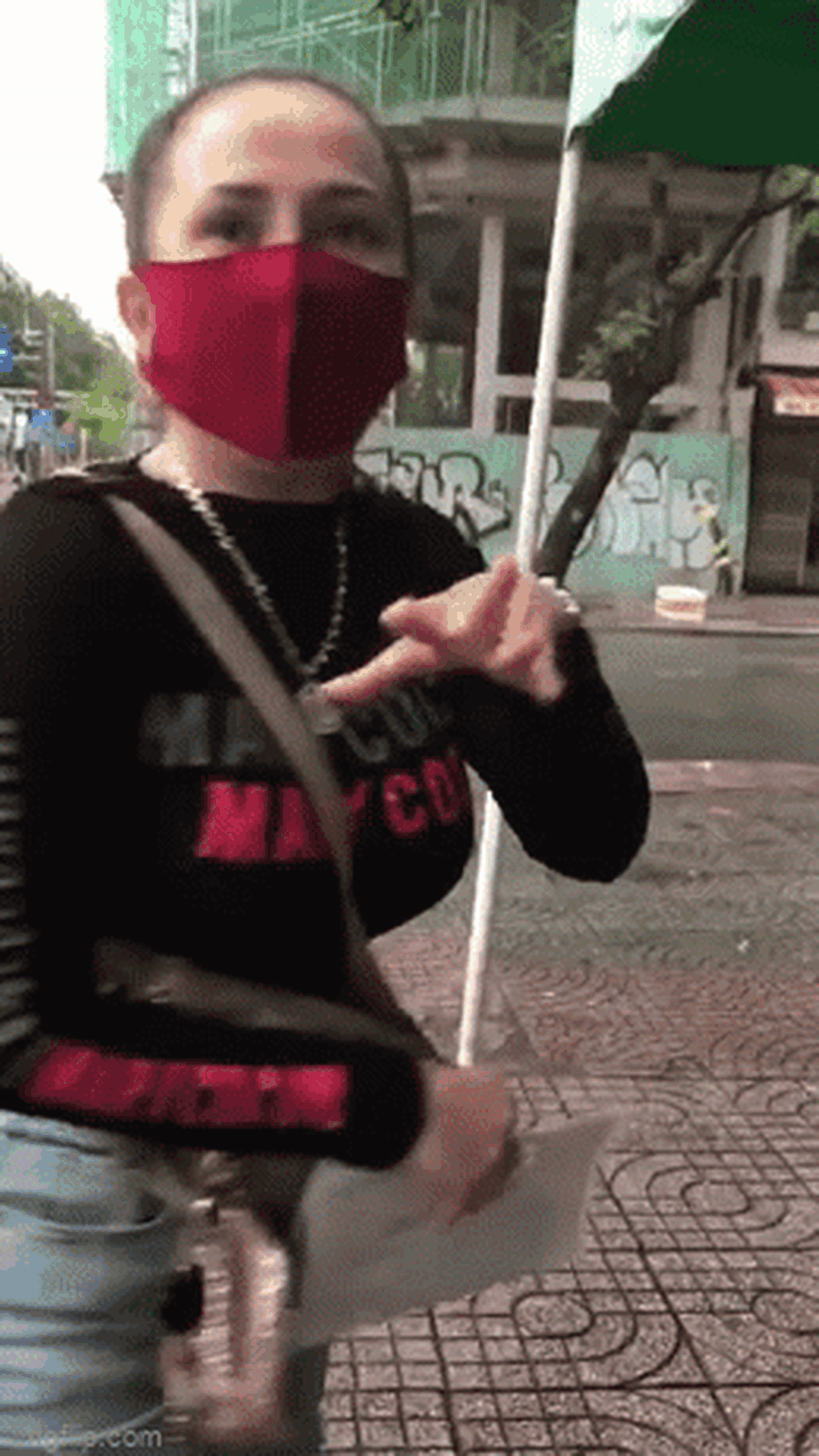 Clip được quay trong ngày 10/8, một ngày sau khi chị bị lập biên bản vi phạm lỗi trên đường Nguyễn Thái Học, phường Cầu Ông Lãnh (Tp. Hồ Chí Minh). Mặc dù trời Sài Gòn đang mưa song người phụ nữ này vẫn nhất quyết dắt con lên chốt kiểm dịch để đòi lại xe máy.