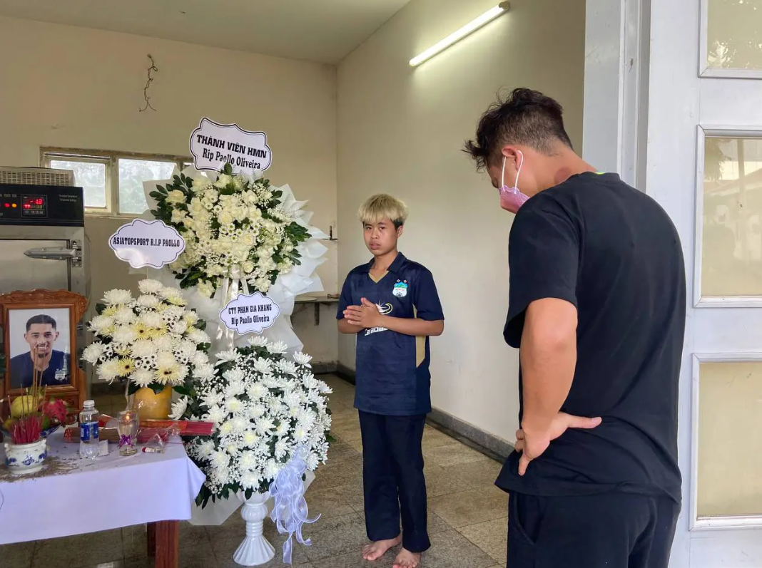 Trong đó lễ viếng, chị Đ.T.T.H. - chị gái tài xế Đinh Tiến Bình - người được xác định đã vi phạm quy định về tham gia giao thông đường bộ dẫn đến tai nạn nghiêm trọng cũng đã đến bày tỏ lòng xót thương trước sự ra đi của tiền đạo trẻ người Bồ Đào Nha.