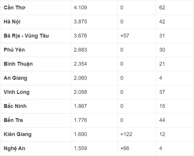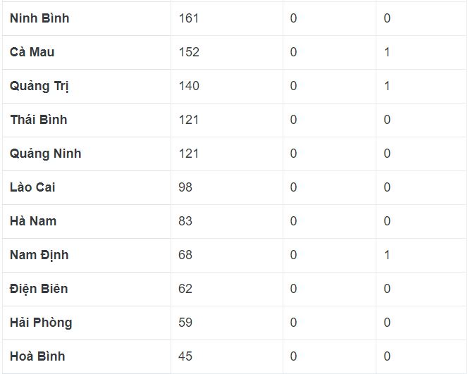 Danh sách chi tiết từ số liệu chính thức của Bộ Y tế về các ca mắc mới COVID-19, ca tử vong tính đến hôm nay 3/9 ở tất cả 63 tỉnh, thành trên cả nước.