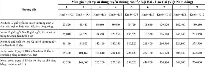 Chi tiết mức tăng phí trên 4 tuyến cao tốc với từng loại phương tiện giao thông như sau: