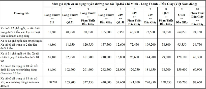 Theo đó, ba tuyến Cầu Giẽ - Ninh Bình, Nội Bài - Lào Cai, Đà Nẵng - Quảng Ngãi tăng đồng mức bình quân 12% so với phí dịch vụ đường bộ hiện tại. Riêng tuyến cao tốc TP.HCM - Long Thành - Dầu Giây tăng 5%.