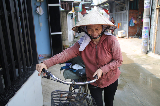 Bà Khải thấy túi nylon đen trong thùng rác trước nhà chị Trương Thị Thuận, 38 tuổi, tại con hẻm ở ấp 4 xã Đông Thạnh (huyện Hóc Môn) trong lần đi nhặt ve chai sáng 5 hôm trước. Treo túi lên xe đạp, bà về nhà cách đó 2 km, bỏ vào khu vực tập trung phế liệu.