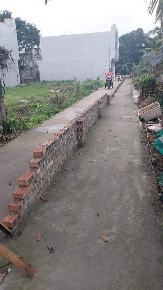 Trên mạng xã hội đang lan truyền hình ảnh về 1 tường gạch được xây thẳng tắp ngăn con đường bê tông rộng 3 mét ra làm đôi.