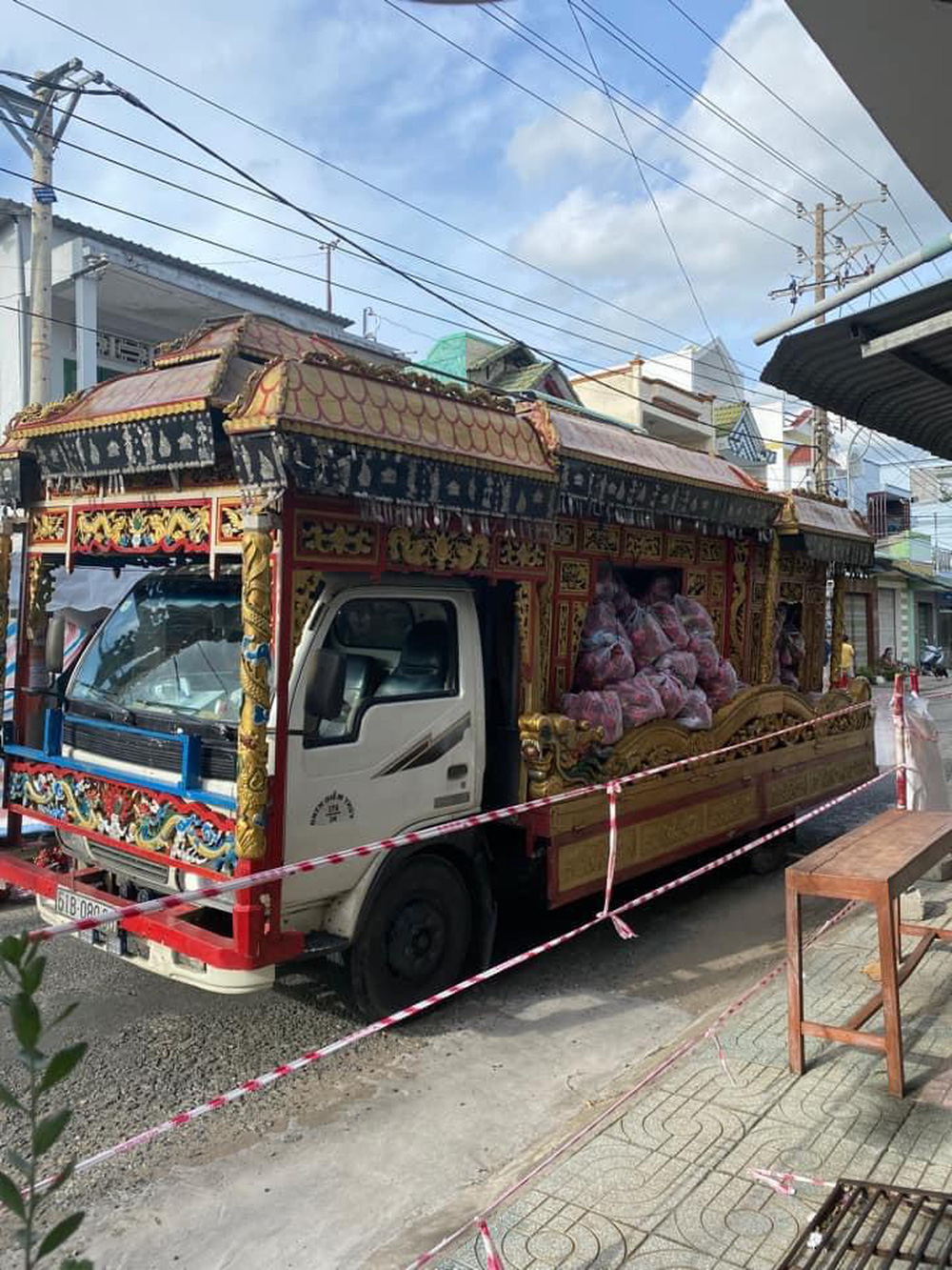 Chia sẻ với Pháp luật & Bạn đọc, chị H. cho biết, chị bắt gặp chiếc xe tang này vào ngày 3/8, tại phường 3, Mỹ Tho, Tiền Giang. Khu vực của chị H. đã bị phong tỏa được 14 ngày, người dân sống trong khu vực này đều được nhận thực phẩm hỗ trợ hàng ngày từ mạnh thường quân và chính quyền địa phương.