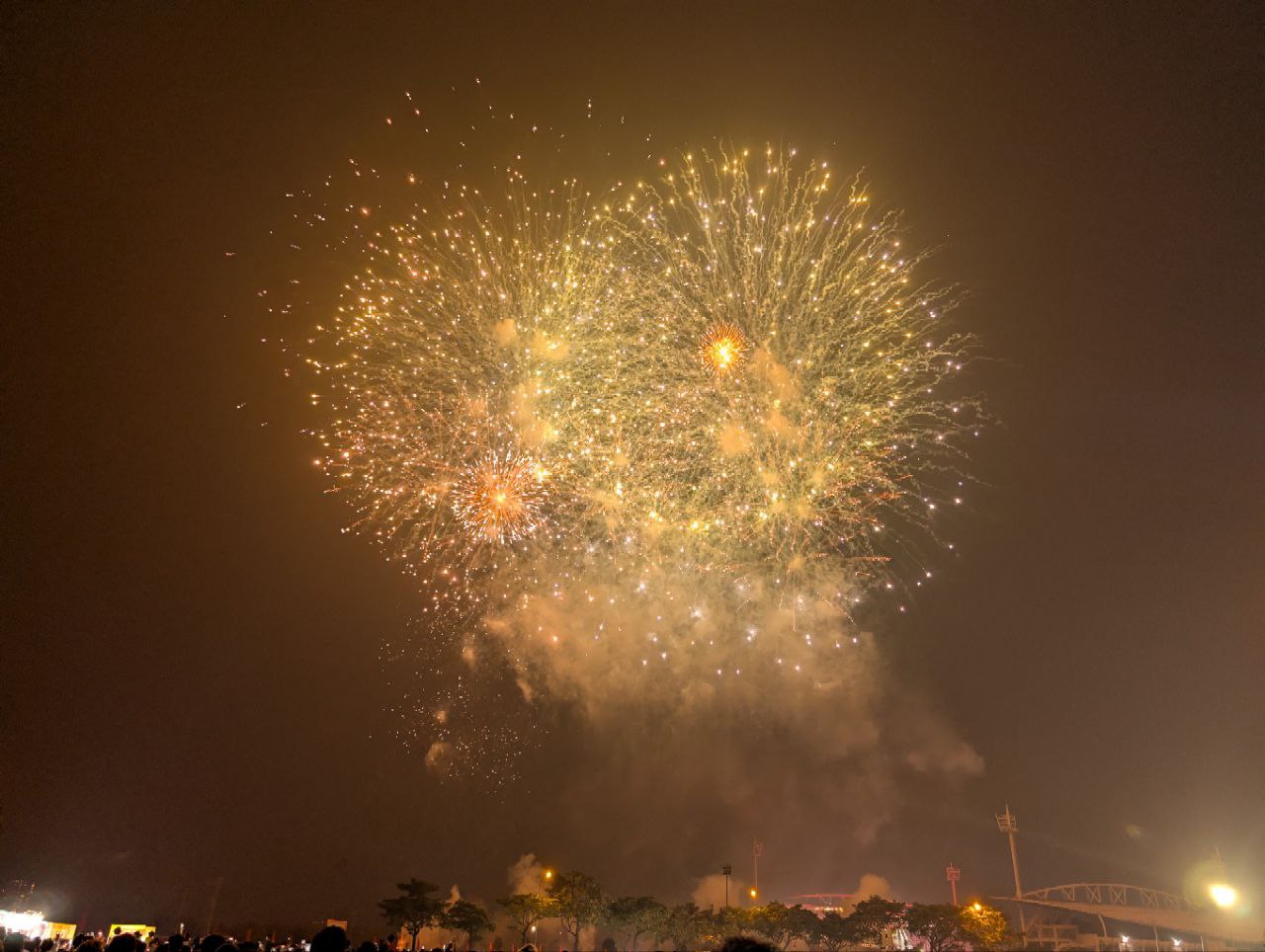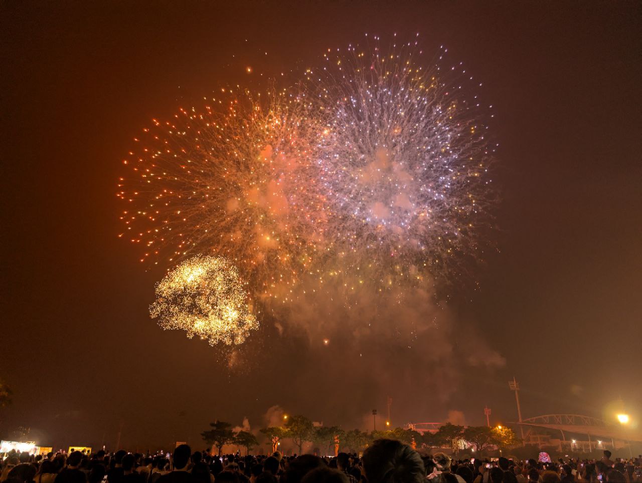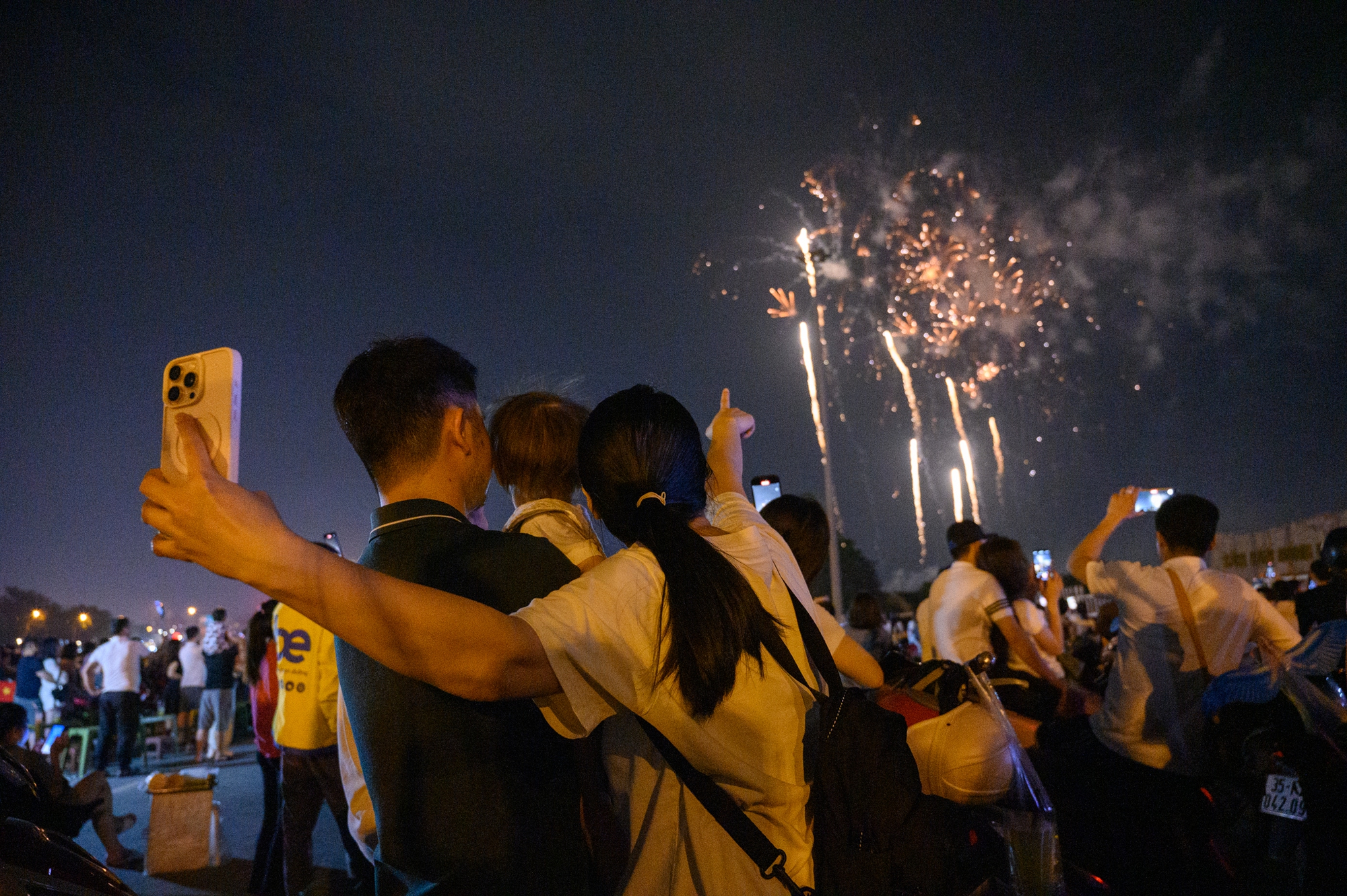 Khoảnh khắc những chùm pháo đầu tiên rực sáng trên bầu trời, hàng nghìn người reo hò thích thú, liên tục giơ điện thoại ghi lại hình ảnh.