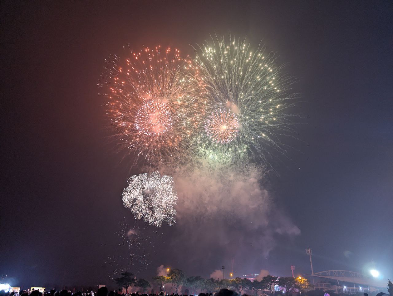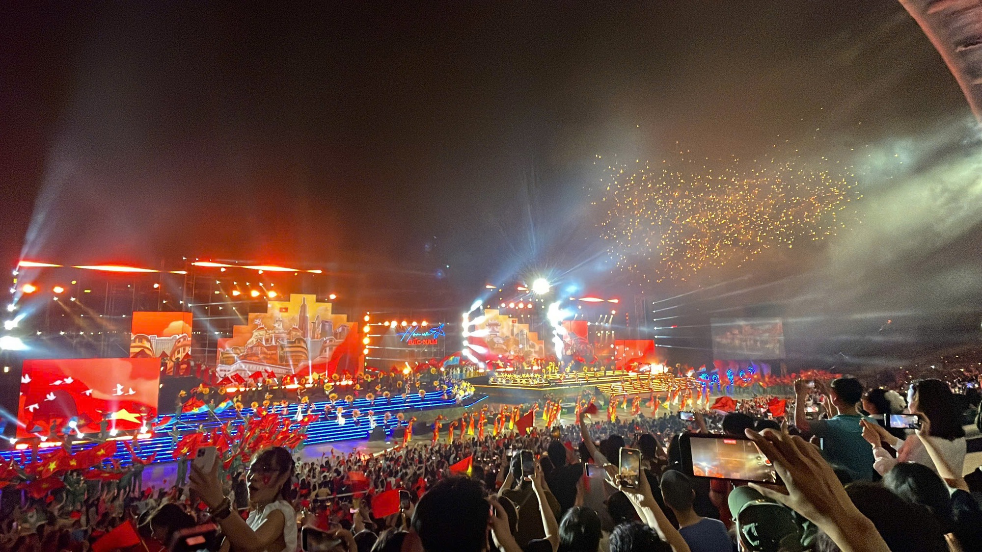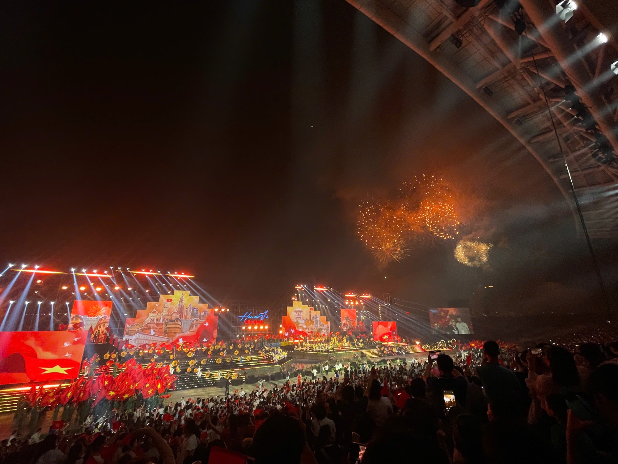 Khoảnh khắc những chùm pháo đầu tiên rực sáng trên bầu trời, hàng nghìn người reo hò thích thú, liên tục giơ điện thoại ghi lại hình ảnh.