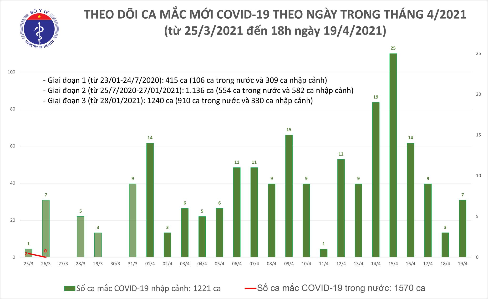 - Tính từ 6h đến 18h ngày 19/4: 06 ca mắc mới, đều được cách ly ngay sau khi nhập cảnh.
