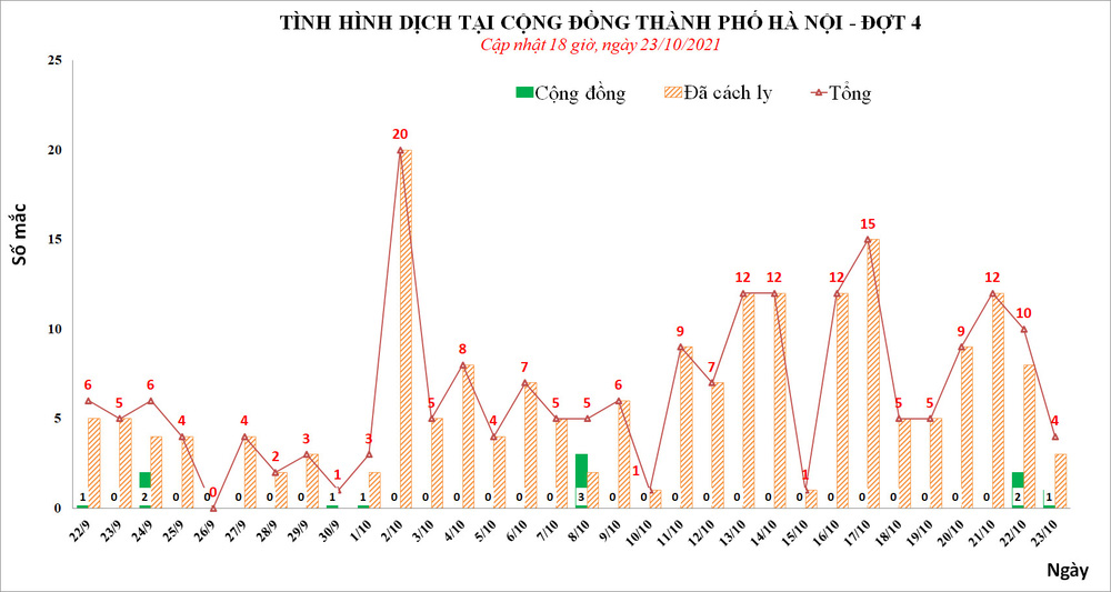 24/10/2021 01:09Chiều 23/10, Hà Nội phát hiện 4 ca mắc Covid-19, trong đó có 1 ca cộng đồng