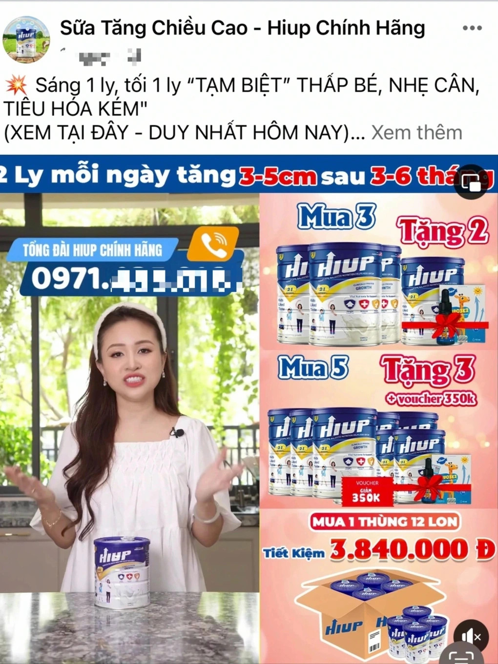 Trước khi bị phanh phui là hàng giả, người tiêu dùng quá quen thuộc với những quảng cáo của sữa HIUP tràn ngập mạng xã hội của BTV Quang Minh, MC Vân Hugo, MC Hoàng Linh đánh vào tâm lý lo lắng của cha mẹ về chiều cao của con.