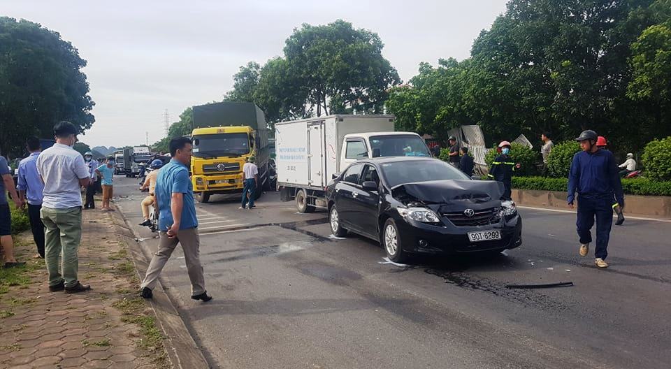 Vụ tai nạn liên hoàn xảy ra vào khoảng 15h30’ chiều nay (2/7) giữa 9 phương tiện gồm xe tải, ô tô con, xe bán tải mang các BKS: 36C-131.88; 29H-467.21; 36F-000.49; 29C-393.34;29C-565.02; 90T-8299; 30G-41299; 89C-155.65; 29A-775.61.