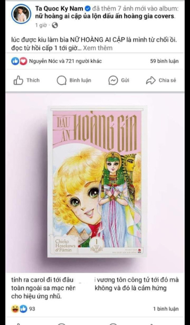 Cụ thể, trong bài viết đăng tải trên trang cá nhân của mình, bên cạnh việc chia sẻ niềm vui vì được tham gia thiết kế bìa cho bộ truyện tranh mà bản thân yêu thích từ nhỏ, khi nói về ý tưởng cho phần hiệu ứng nhũ trên bìa truyện, Tạ Quốc Kỳ Nam đã có phát ngôn không phù hợp.