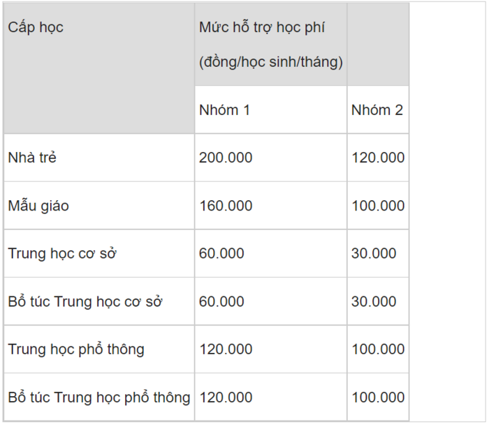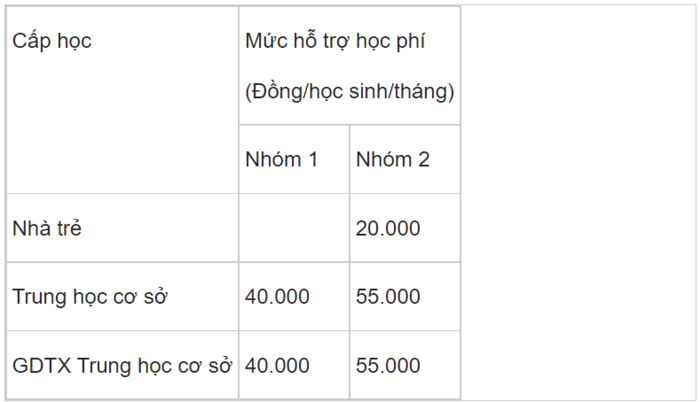 Đồng thời được tiếp tục thực hiện hỗ trợ kinh phí cho cơ sở giáo dục công lập có tổ chức dạy học Nhà trẻ (nhóm 2), THCS, Giáo dục thường xuyên THCS như sau: