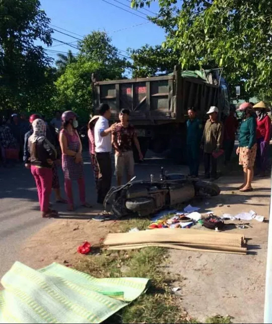 Theo đó, khoảng 7 giờ 30 phút ngày 19-6, tại ngã 4 thôn Cổ Thành, xã Triệu Thành (huyện Triệu Phong) xe ôtô ben mang BKS 74K-9856 do Nguyễn Hữu Pháp (SN 1985; ngụ tại thôn Cổ Thành) điều khiển đã tông vào xe máy BKS 74E1-2669 do chị N.T.M.D (SN 1985; ngụ thôn Cổ Thành) điều khiển cùng chiều, chở thêm 2 con nhỏ ngồi sau.