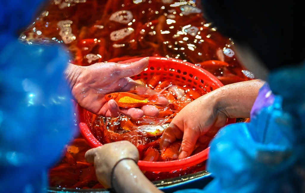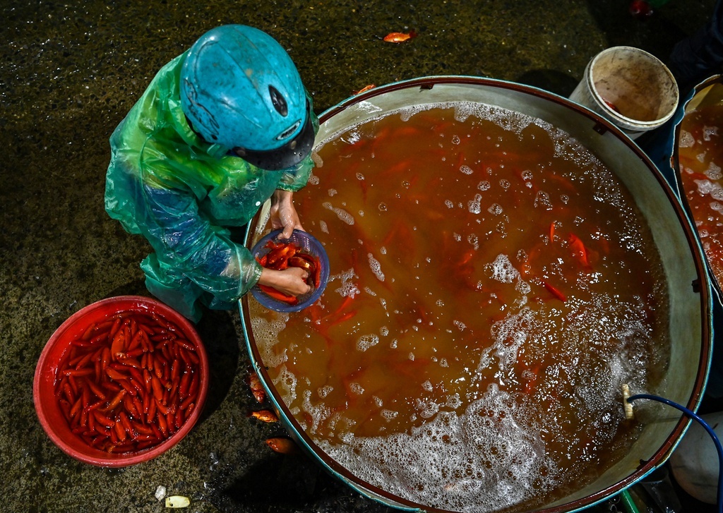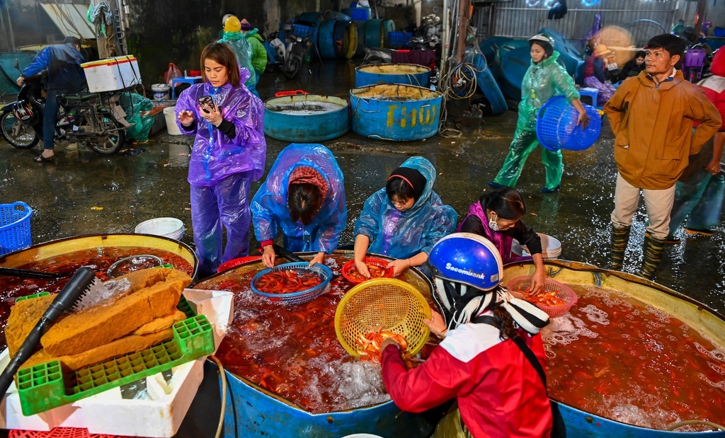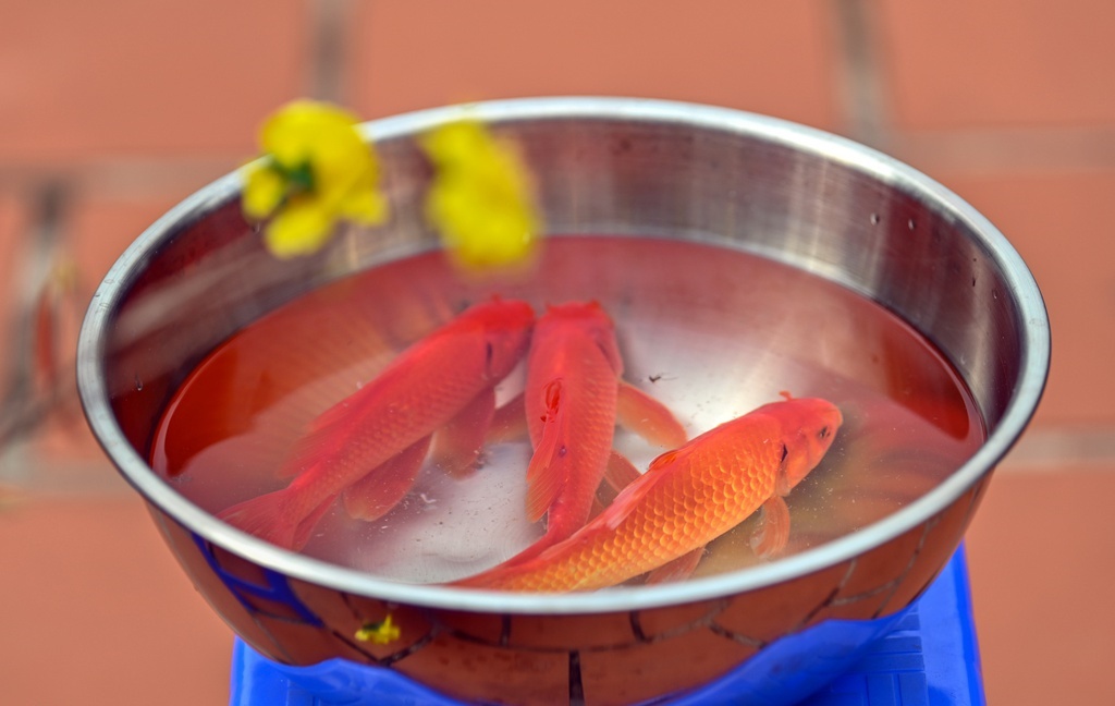 Như thường lệ, vào mỗi ngày ông Công ông Táo, chợ cá Sở Thượng (Hoàng Mai, Hà Nội) lại càng nhộn nhịp, tấp nập cảnh mua bán cá chép đỏ.