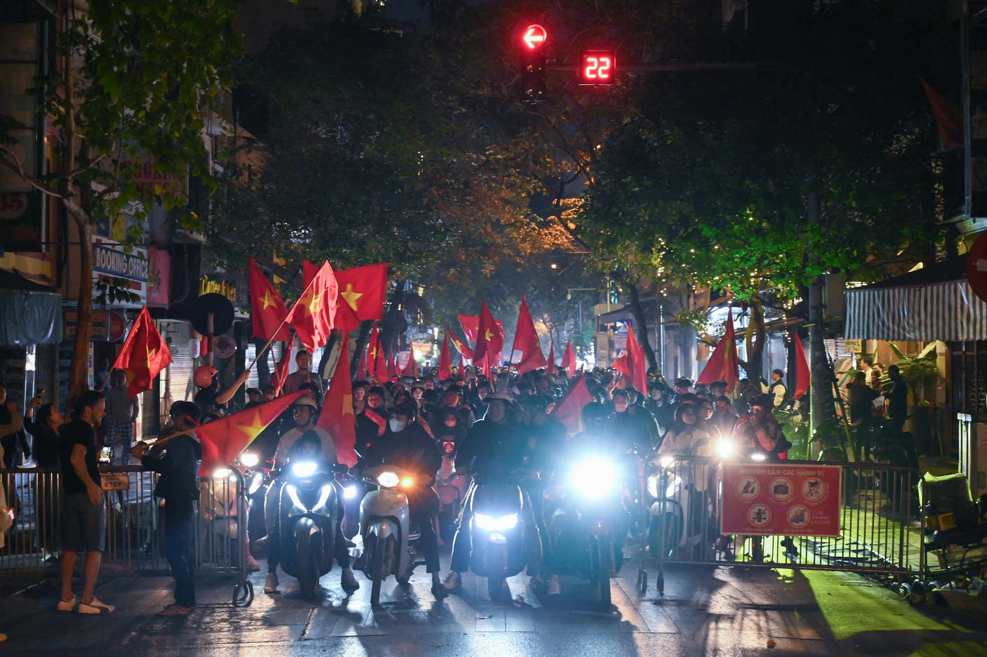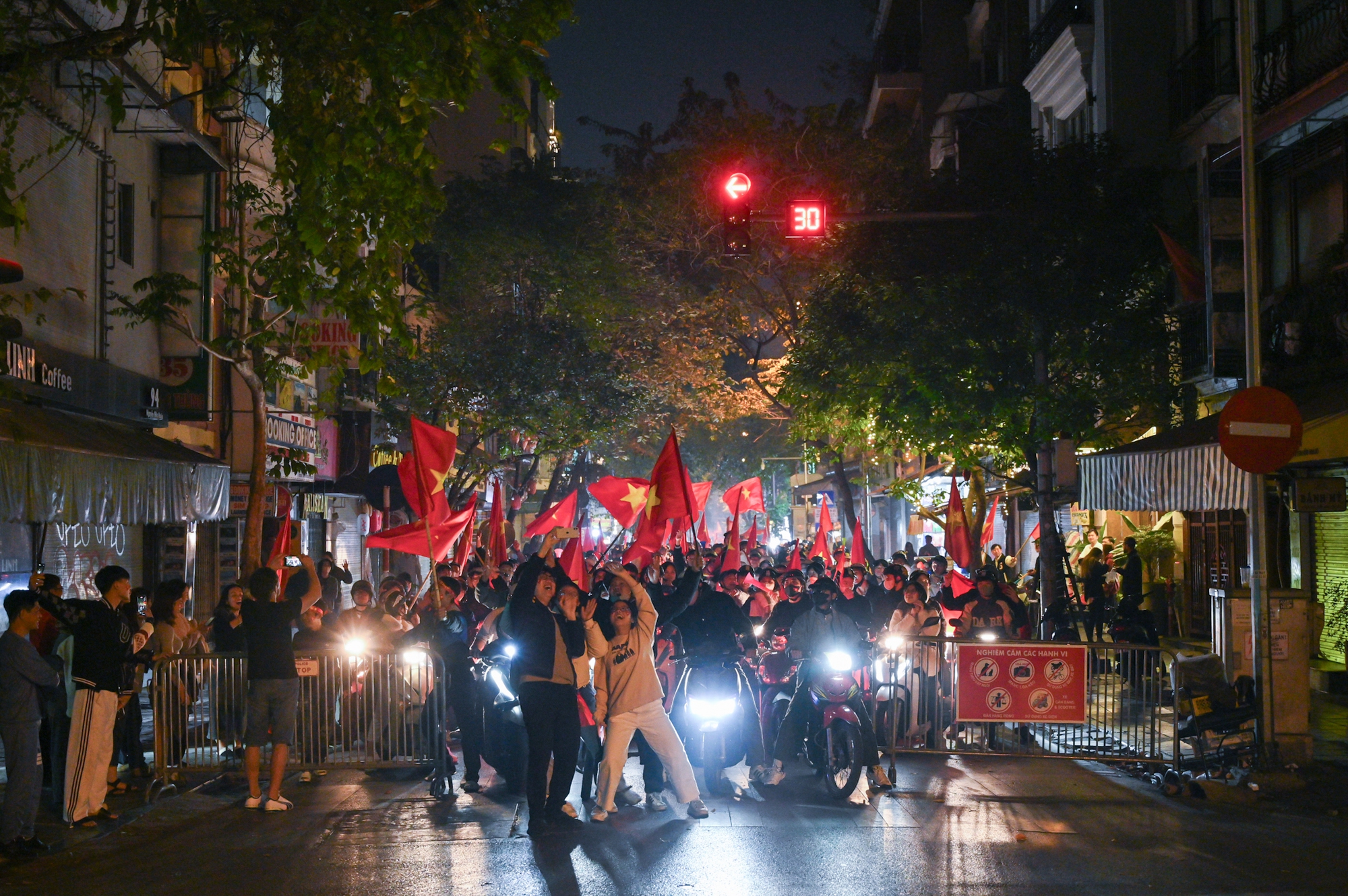 Dù vui nhưng người dân khắp nơi, đặc biệt là người dân thủ đô Hà Nội vẫn nghiêm chỉnh chấp hành các quy định khi tham gia giao thông, đặc biệt là tuân thủ theo đèn tín hiệu. Tuy nhiên, thay vì những hình ảnh yên lặng và nghiêm túc thường thấy, mọi người lại cùng nhau đếm ngược, chờ đợi giây phút đèn tín hiệu trở về 0 và đổi xanh để tiếp tục di chuyển ăn mừng.