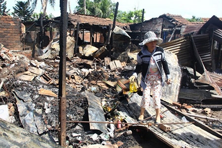 Người dân tìm những vật dụng còn sót lại sau đám cháy - Ảnh: Quang Đoàn |