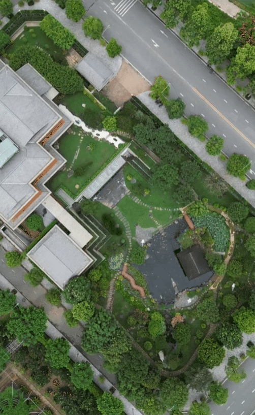 Căn biệt phủ nằm đối diện công viên Thiên Văn Học rộng tới hơn 12ha được bao phủ bởi cây xanh và hồ nước lớn tạo cảnh quan vô cùng đẹp mắt phía trước nhà. Bao quanh biệt phủ là khu đô thị triệu đô với các biệt thự nối tiếp nhau, mọc lên san sát. Đây được mệnh danh là khu "đất vàng" của quận Hà Đông, Hà Nội.