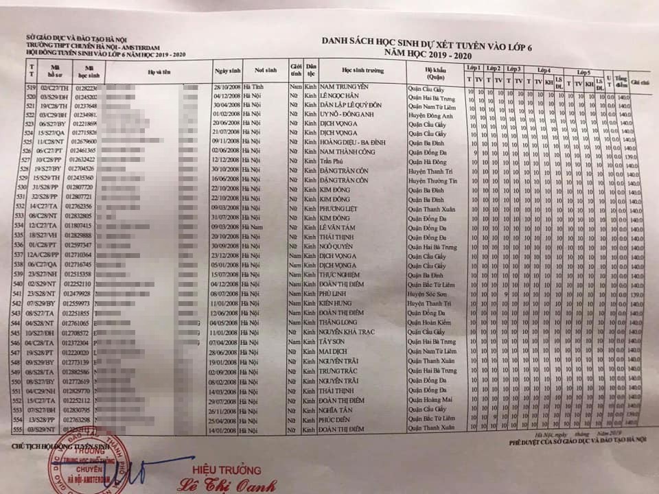 Bảng điểm “rực rỡ” này xuất phát từ chính quy định trong hướng dẫn công tác tuyển sinh lớp 6 năm học 2019-2020 của Sở GD-ĐT Hà Nội đối với Trường THPT chuyên Hà Nội – Amsterdam.