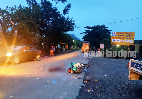 Khi tới địa điểm trên, chiếc ôtô tải bất ngờ tông vào đuôi chiếc xe máy đi cùng chiều mang BKS 28S4-9297 do anh N.D.H. điều khiển chở theo vợ là chị B.T.T. (cùng SN 1999, ngụ phố Lâm Hóa, xã Vũ Lâm, huyện Lạc Sơn, tỉnh Hòa Bình ).