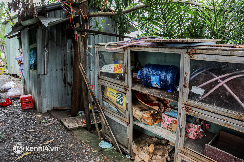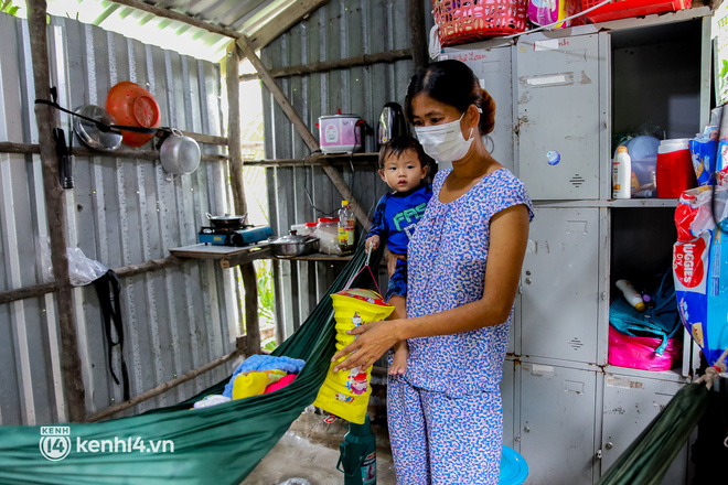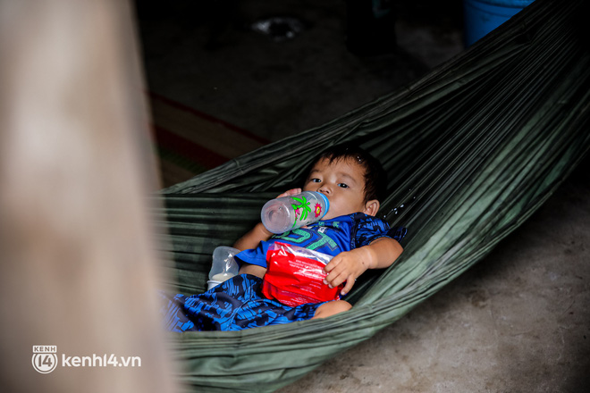 "Nhà này của người ta thấy thương nên cất cho mấy mẹ con, tối 4 mẹ con ngủ võng, có lần thằng Phúc té từ trên võng té xuống. Giờ chị chỉ mong có sữa tã cho con thôi, hết dịch rồi chị đi bán vé số, cân đồ bậy bạ kiếm tiền mà lo cho tụi nhỏ", nói đoạn, chị Bích bật khóc.