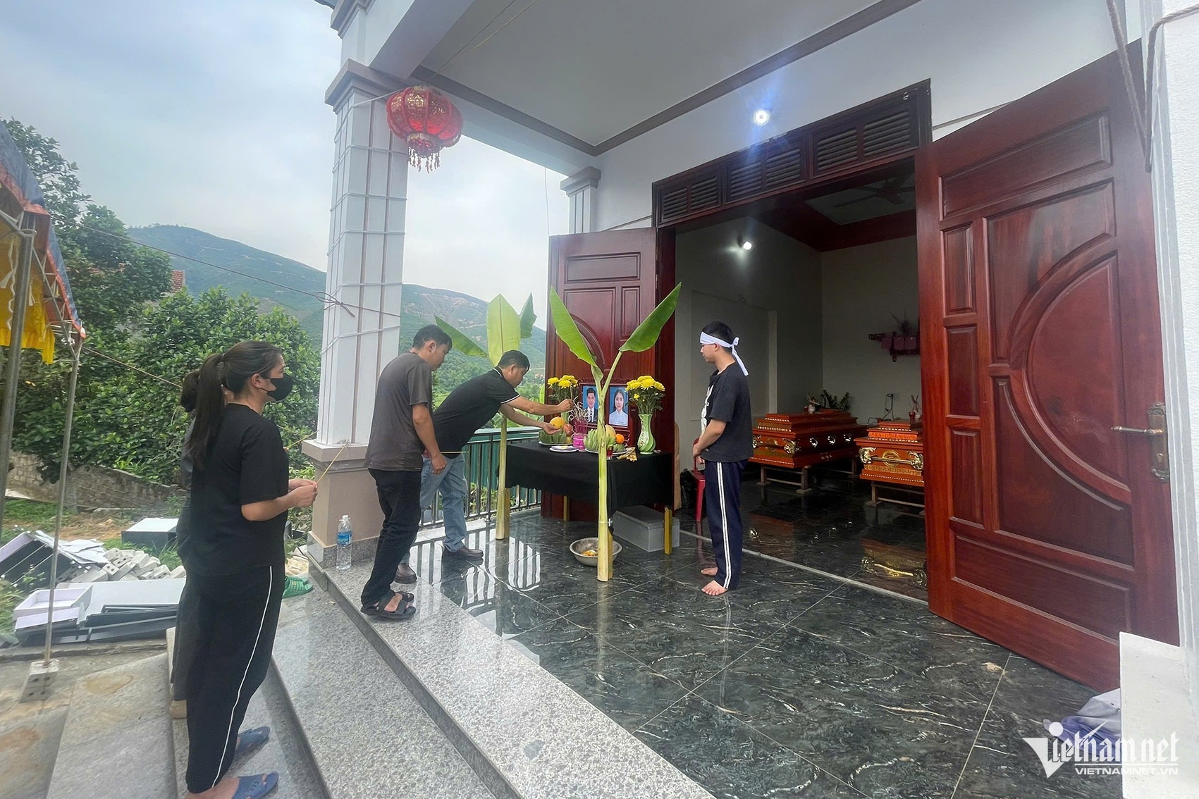 Sáng ngày 3/6, theo ghi nhận của báo VietNamNet, ngôi nhà khang trang xây năm 2023, nơi diễn ra vụ án, bao trùm không khí tang thương. Hai cỗ quan tài được đặt trong phòng khách, di ảnh vợ chồng trẻ đặt trên bàn thờ.