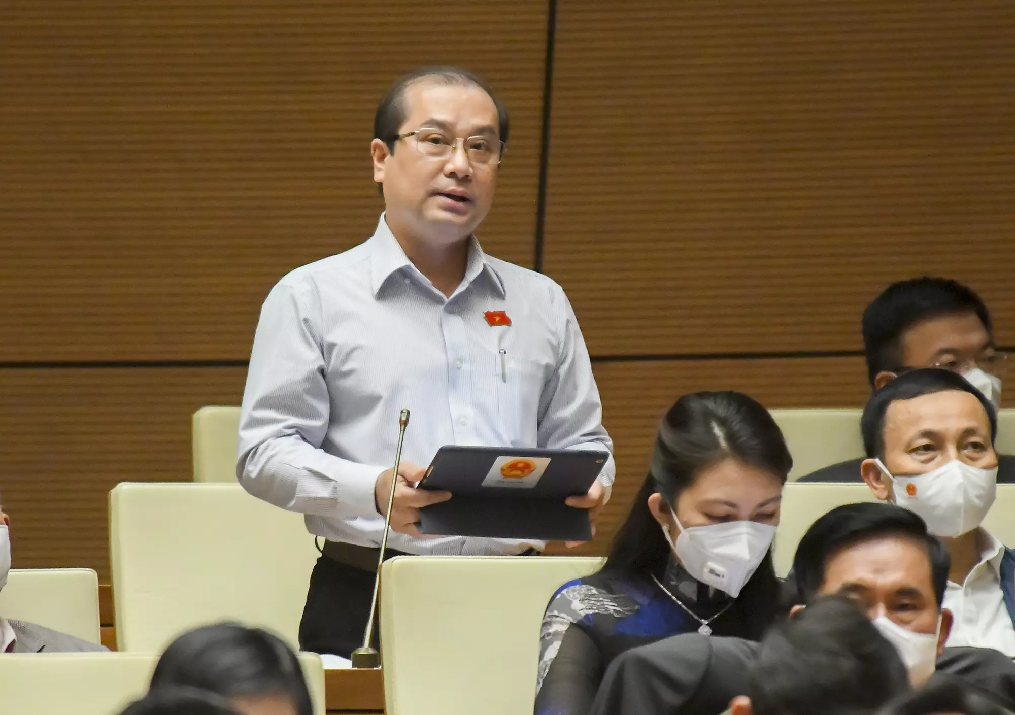 "Tôi vừa mới xem clip trưa nay là người phụ nữ đập chồng không còn ra gì hết. Ông chồng chỉ biết ôm đầu bỏ chạy", đại biểu An Giang chia sẻ.