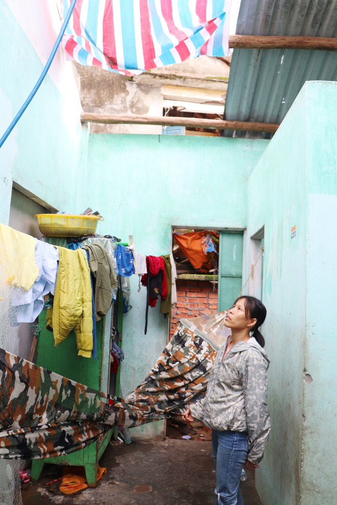 "Nhà nó tội lắm, không có gì ăn đâu, ở đây ai cũng thương cả, nhưng chỉ giúp được mớ rau, con cá thôi. Bão vào nhà nào cũng bị hư, mà thương nhất nhà con Hồng, đã nghèo rồi lại còn bay hết mái tôn, không biết sống sao nữa, mưa xuống là ướt hết", cô Tâm (hàng xóm) nói.