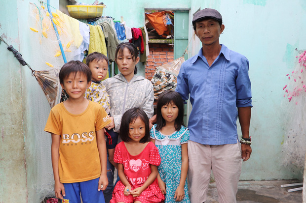 Lúc trước, ảnh còn khỏe, ảnh đi biển, đi về cũng có tiền để mấy mẹ con mua đồ ăn. Giờ có đi được nữa đâu, hễ ra biển là không ngủ được, xong về bị đau đầu, rối loạn thần kinh nên la hét, đuổi mấy mẹ con chị đi vòng quanh xóm, khổ lắm", nói đoạn chị Hồng nhìn về phía anh Võ Thành Trí (44 tuổi, chồng chị Hồng), bật khóc.