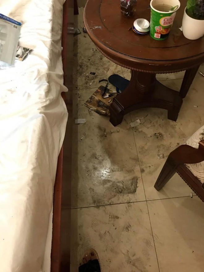 Những hình ảnh mà người quản lý khách sạn ghi lại, toàn bộ căn phòng đều rất bừa bộn với nhiều rác thải như chai lọ, cốc mì tôm ăn dở bị vứt bừa bãi trên bàn, dưới đất và cả trên giường.