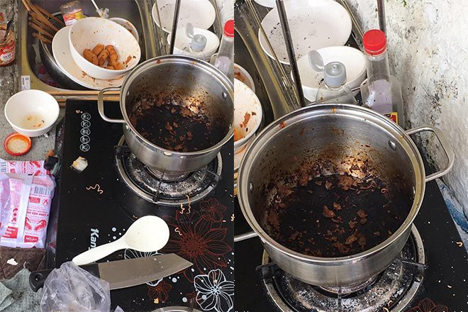 Khách nấu ăn cháy đen cả nồi, bát đũa ăn để cáu bẩn hết cả