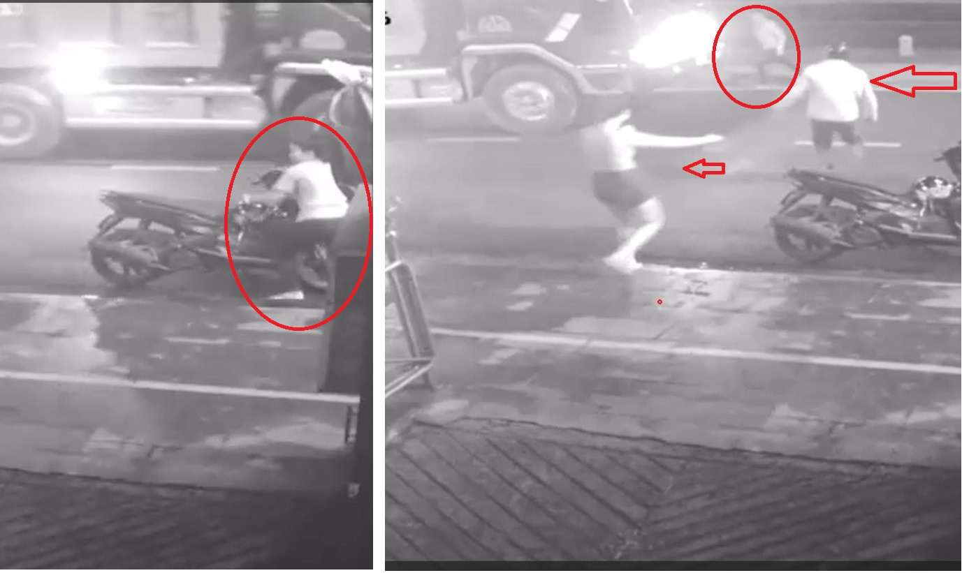 Chị Thảo đi gọi người giúp đỡ thì phát hiện đối tượng chưa rút chìa khóa xe máy. Chị nhanh tay rút chìa rồi chạy sang bên đường nhờ tài xế xe tải hỗ trợ.