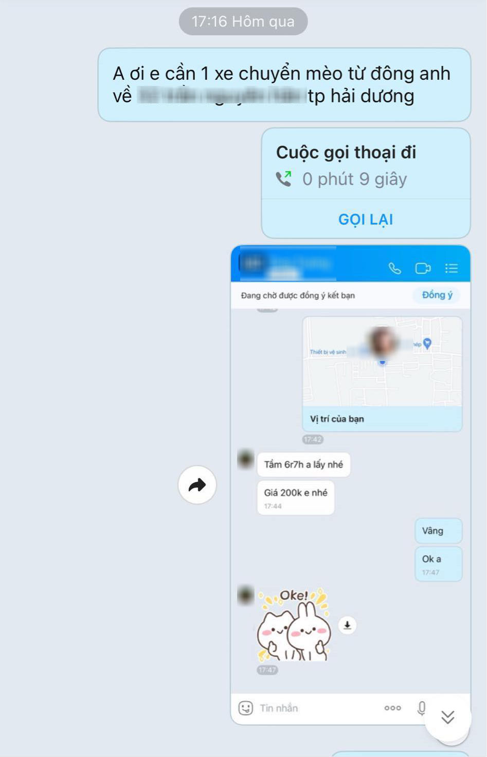 Khi giao mèo cho lái xe, P.C. cũng gọi điện kiểm tra lại và được báo lại mèo đã được để lên ghế, nên cô yên tâm chờ tài xế chuyển mèo về Hải Dương cho mình.