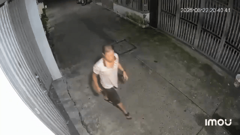 Trước đó, trên mạng xã hội lan truyền đoạn clip do camera an ninh ghi lại cảnh một người đàn ông mặc áo phông trắng kẻ ngang, quần sooc đen đến cửa nhà ông Ân giật mạnh cánh cổng nhiều lần. Người này còn nhặt một túi rác trước cổng ném vào camera, thái độ rất hùng hổ.