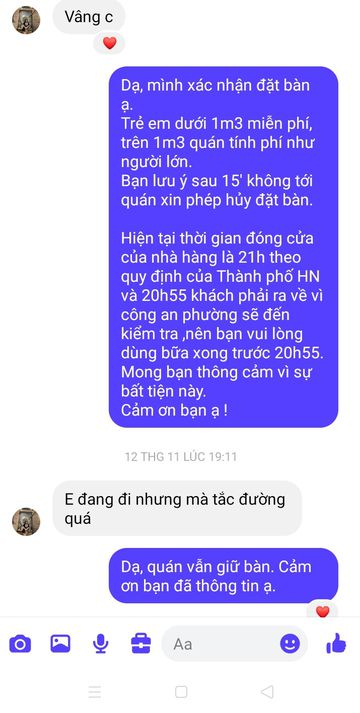 Nội dung của bài đăng như sau: "Sự việc đáng buồn tối nay (ngày 12/11) tại C.M.B (tên quán) liên quan đến một vài vị khách cố tình chây ì ngồi ăn quá giờ trong khi nhân viên nhà hàng đã liên tục nhắc nhở trước và trong bữa ăn nhà hàng phải đóng cửa và dừng phục vụ khách lúc 9h tối đảm bảo quy định hạn chế người phòng dịch Covid của thành phố Hà Nội.