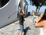 Hình ảnh lan truyền trên mạng xã hội cho thấy một người đàn ông được cho là chủ quán đã cầm ghế và xẻng lao ra rượt đuổi nhóm du khách. Một số người khác cũng tham gia, khiến tình hình trở nên hỗn loạn. Đáng chú ý, trong clip xuất hiện cảnh một du khách trượt ngã và bị người cầm xẻng dí vào vùng đầu, làm dấy lên làn sóng bức xúc.