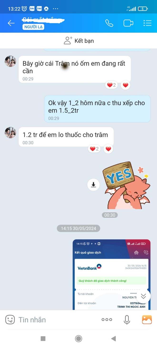 Chị T. khẳng định, số tiền quán nợ A. lúc đầu là 28 triệu đồng. Tháng 5, tháng 6, chị đều chuyển cho chủ nợ của A. là 2 triệu đồng. Trong thời gian đó, chị T. có chuyển cho A. hơn 2 triệu đồng sau khi người này nói con bị ốm.