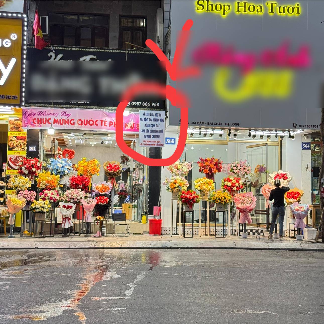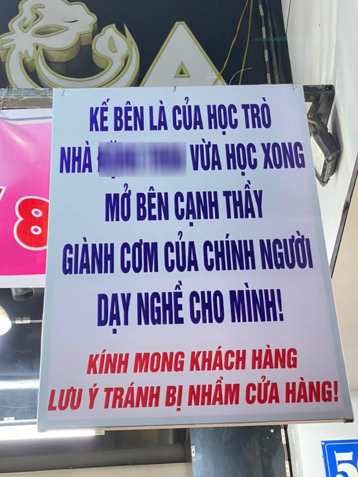 Chủ cửa hàng hoa Đ.T sau đó đã treo một tấm bảng kích thước khá lớn trước cửa hàng với nội dung: “Kế bên là của học trò nhà Đ.T., vừa học xong mở bên cạnh thầy giành cơm của chính người dạy nghề cho mình! Kính mong khách hàng lưu ý, tránh bị nhầm cửa hàng!"