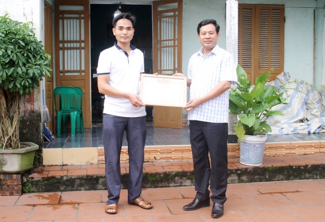 Chủ tịch UBND huyện Tam Đảo trước đó đã tới tận nhà để biểu dương hành động nghĩa hiệp, cứu giúp người trong trường hợp khẩn cấp của anh Đinh Văn Chiến.