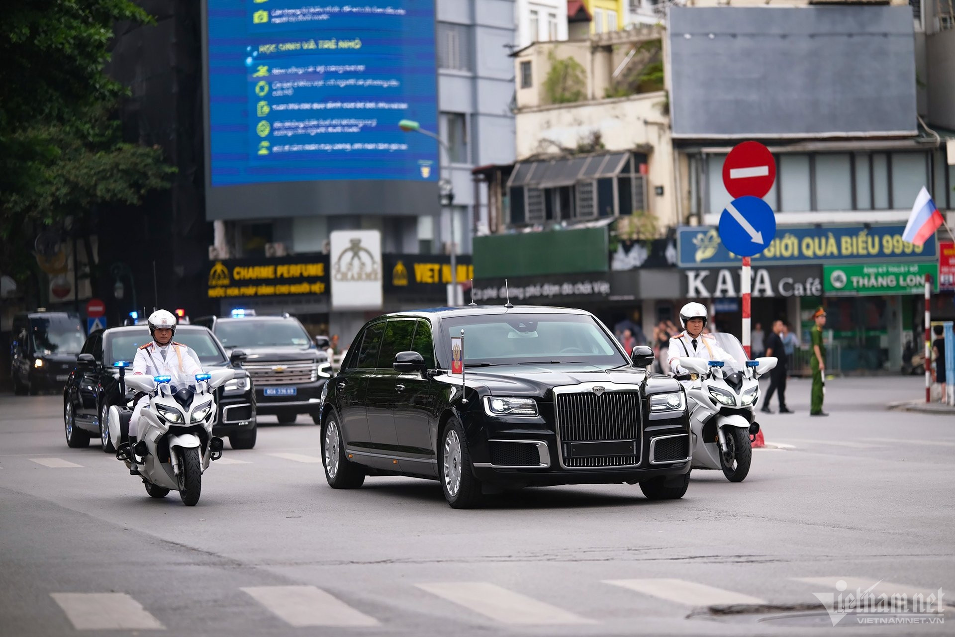 12h15: Đoàn xe chở Tổng thống Nga tiến vào Phủ Chủ tịch. Chủ tịch nước Tô Lâm ra tận cửa xe đón ông Putin.