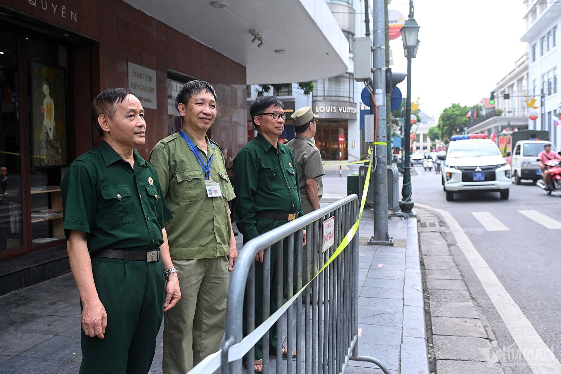 Ông Đỗ Thắng (trái, cựu chiến binh) cho biết ông và bạn bè mình vô cùng yêu quý Tổng thống Nga Putin. Hôm nay ông có mặt từ 10h tại phố Tràng Tiền để vẫy chào đoàn xe qua.