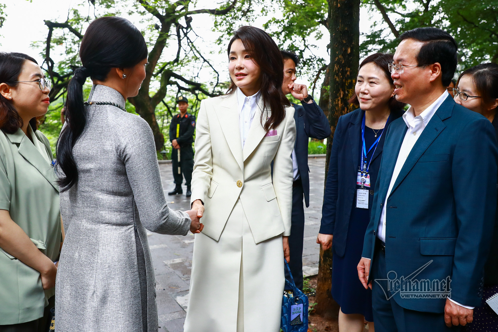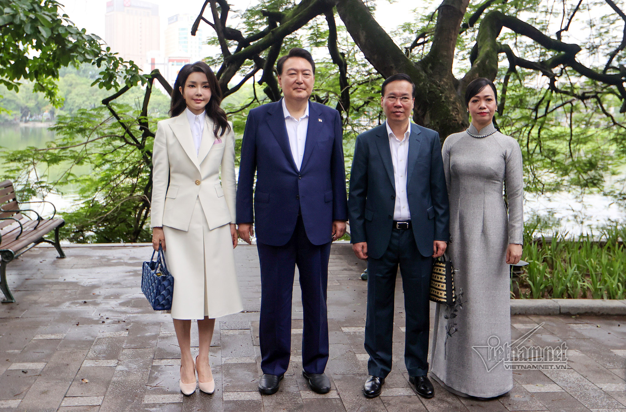 Sau khi dùng bữa sáng, Chủ tịch nước và Tổng thống cùng hai phu nhân đã có những phút dạo phố đi bộ Hồ Gươm.