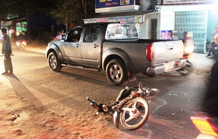 Cả ba văng xuống đường, anh Như và Nhường nằm ở hướng ngược lại nên bị ôtô bán tải cuốn vào gầm.