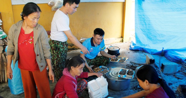 Trước đó, vào tối 13-10, lực lượng chức năng đã thành lập 2 bếp ăn dã chiến tại trường tiểu học Phong Xuân để nấu ăn, đảm bảo lương thực tiếp ứng cho các đoàn thực hiện công tác cứu nạn. Thương các chiến sĩ khổ cực, hàng chục người dân tại các xã Phong Xuân, Phong Sơn đã tự nguyện đóng góp gà, vịt, gạo, rau,…để bổ sung cho bữa ăn của các chiến sĩ.