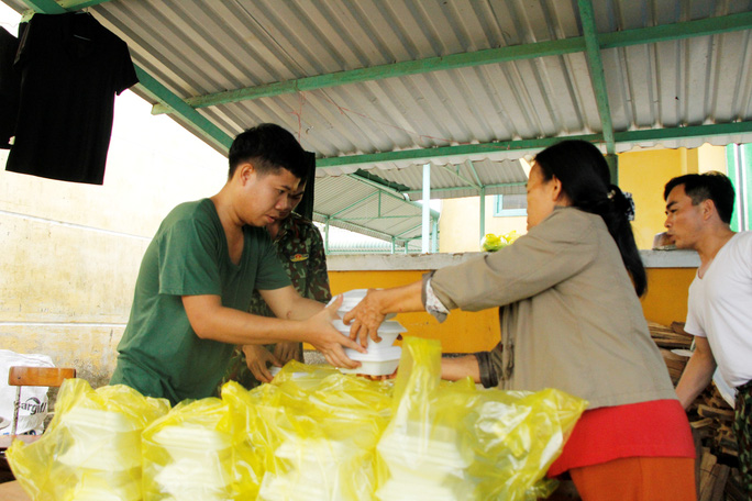 Đến hơn 10 giờ sáng cùng ngày, người dân cùng các chiến sĩ đã nấu hơn 60 suất ăn đóng gói tinh tươm, chuẩn bị chuyển vào cho các chiến sĩ đang thực hiện nhiệm vụ bên trong khu vực tìm kiếm. Bà Trần Thị Tích (SN 1958, trú thôn Phong Xuân, xã Phong Xuân) cho biết bà cùng nhiều chị em khác đã tham gia, tình nguyện nấu ăn cho các chiến sĩ ngay từ đêm đầu tiên.