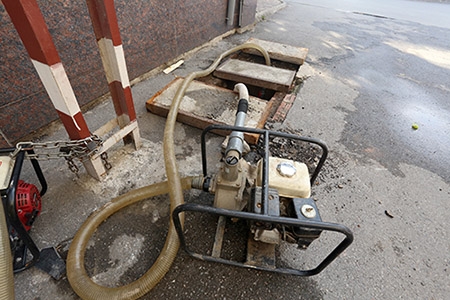 Nhiều gia đình phải mua cả chiếc máy bơm công suất lớn để hút nước. Ảnh: Phương Sơn. |