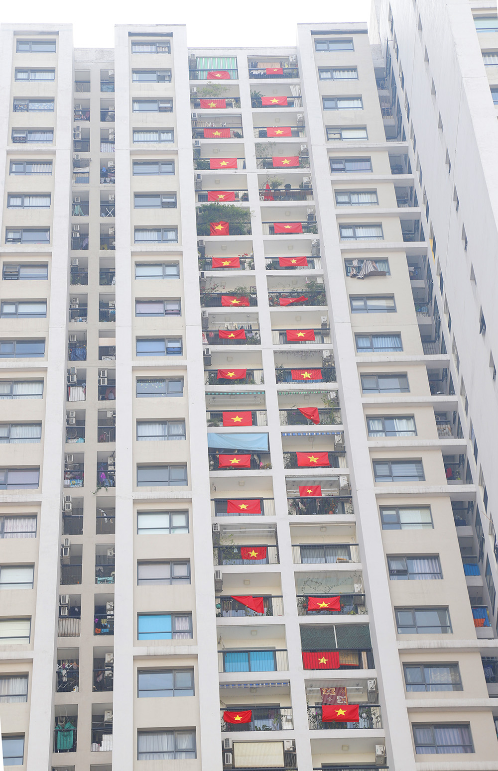 Trao đổi với chúng tôi, anh Dương Quốc Tuấn, Trưởng ban quản trị tòa nhà này cho biết, người dân trong tòa nhà đã bắt đầu phát động treo cờ tổ quốc từ ngày1/4 để kêu gọi mọi người cùng chống dịch.