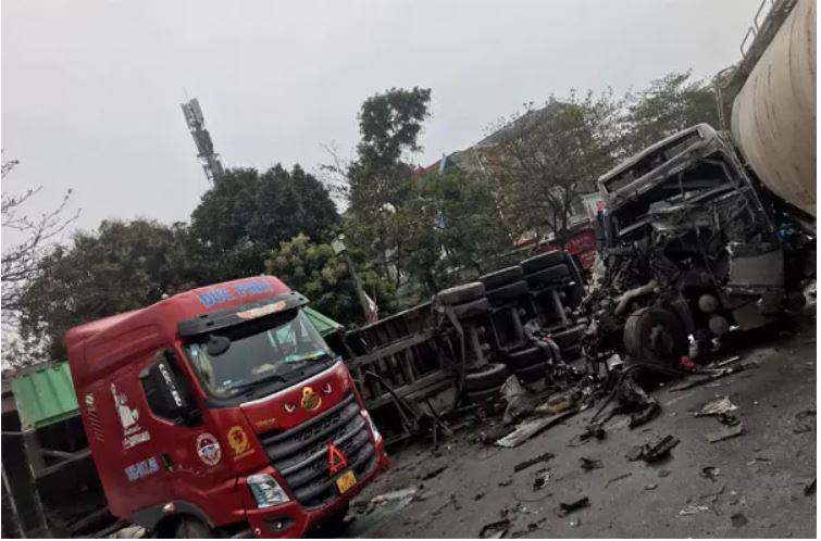 Theo nhân chứng có mặt tại hiện trường, chiếc xe đầu kéo mang biển số Hải Dương di chuyển theo hướng Hà Nội - Hải Phòng khi đến khu vực điểm mở dải phân cách đã phanh gấp để tránh một xe tải đang quay đầu, khiến xe bị trượt xoay ngang và đâm vào một chiếc xe đầu kéo khác biển Hải Phòng đang di chuyển theo chiều ngược lại.
